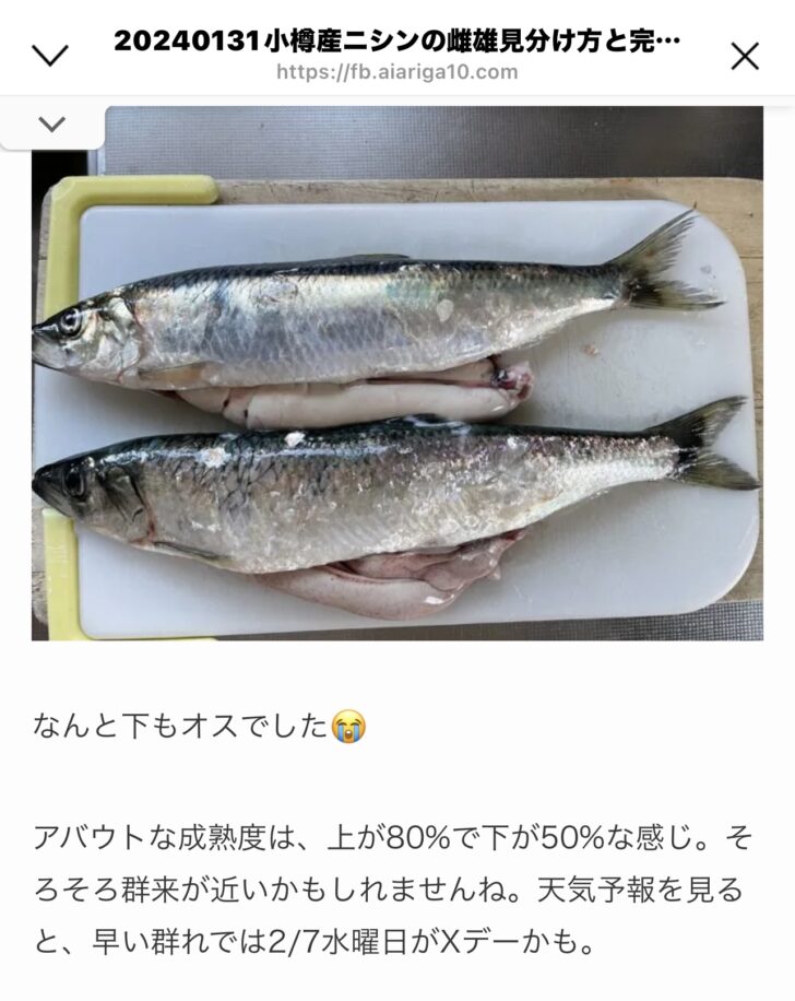 本日2/7朝里方面で群来の情報をいただきました。早速様子を見て来ます💦