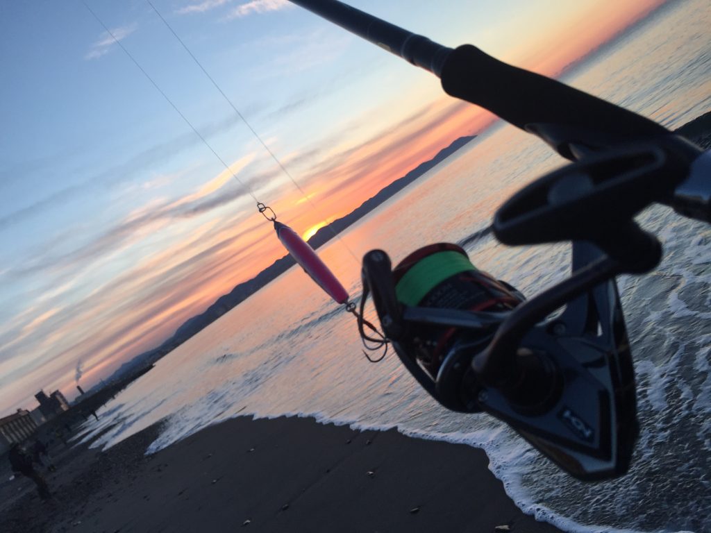 自分も夕方からはじめて間もなく、沖合にハネが見られ、多少は魚っ気ありそうですが、数人のいずれにもヒットすることはありませんでした。