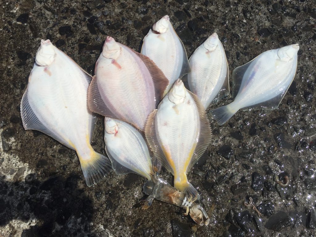 このサイズ、数なら十分な釣果だと思います。しばらく南防波堤で釣りしてないですけど、そろそろ網も入りカレイが本格化する時期でしょうか。^_^;