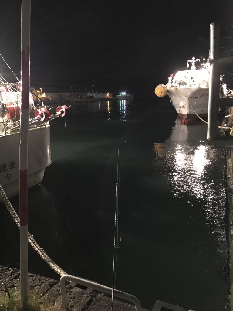 避難しているイカ釣り漁船の灯りには、ベイトがわんさか。雰囲気は良いのですが…