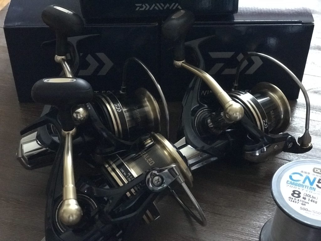 さて、前置きが長くなりましたが、投げ釣り用リールは30年前の物をはじめ10台以上はありますが、持ち主と同じで経年劣化も激しく、またアキアジの投げ釣りのことも視野に入れ、今回PayPayのキャンペーンにもあおられて、廉価版ではありますが3台同時購入しました。