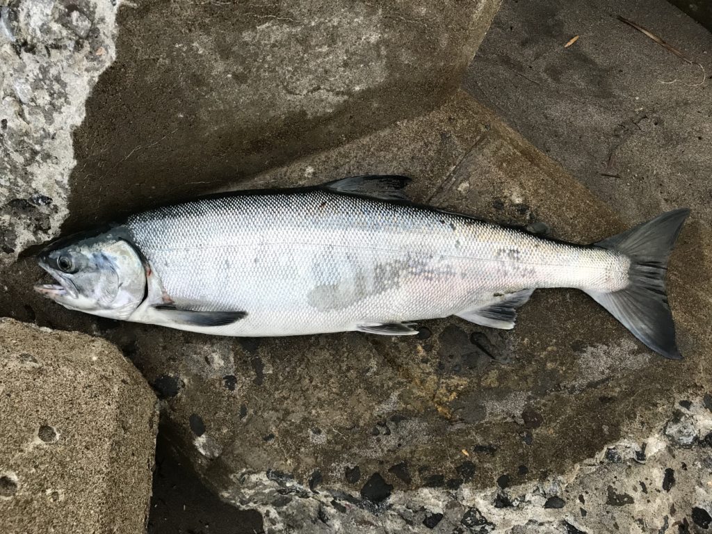 ということで、次回は釣れたサケの一部を餌にして、投げ釣りをして検証してみたいと思います。例えば白子で爆釣!笑。