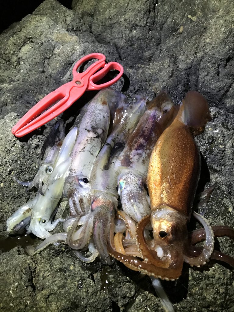 自分は、マイカとヤリイカ狙いなので、どうしても潮通しの良い場所、沖に面している磯場が中心なのでこの時期は、なかなか釣りになりません。
