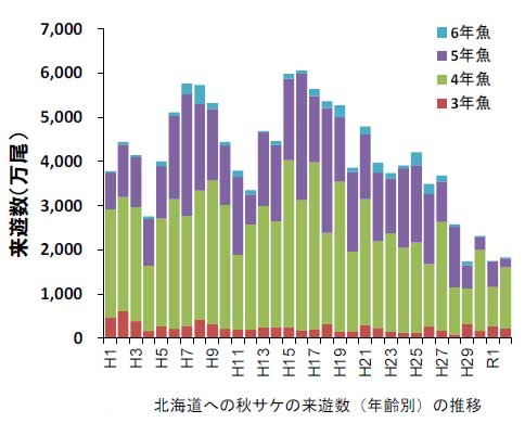明瞭な右肩下がり、今年はピーク時の1/3以下です。そのうち、幻の魚になりますな。